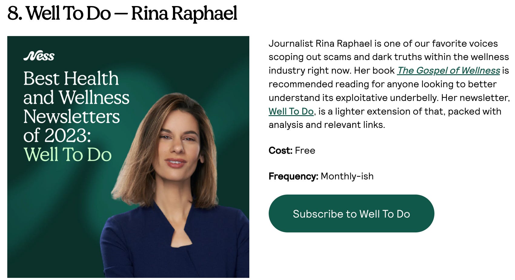 If you value this newsletter—and would like to see it continue!—do consider a paid subscription. For $5 a month, you can get news, trends, analysis, and a whole lotta opinion. And hey, forecasting too: I predicted the decline of Goop-ified wellness and the wellness industry’s shift a year before Gwyneth started shuttering her stores.